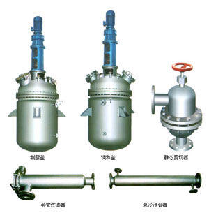 靜態剪切器、脫氣罐、套管過濾器、急冷混合器、均質機、分裝機等。