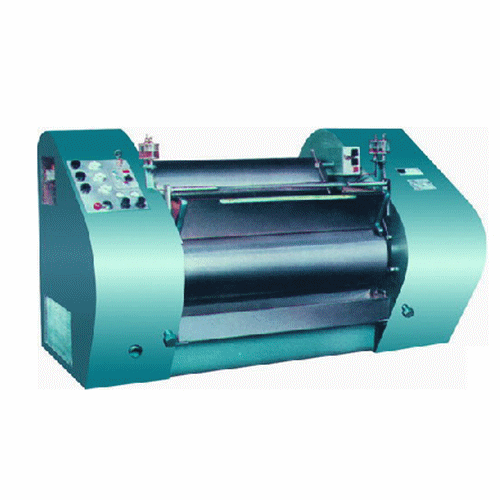 ①啟動運轉后,調節中、后兩輥間隙為0.3毫米,壓緊擋料板,適當加入漿料,目測著色深度,微調后輥,使之著色均勻布滿軋輥后,鎖緊固定螺母。