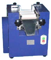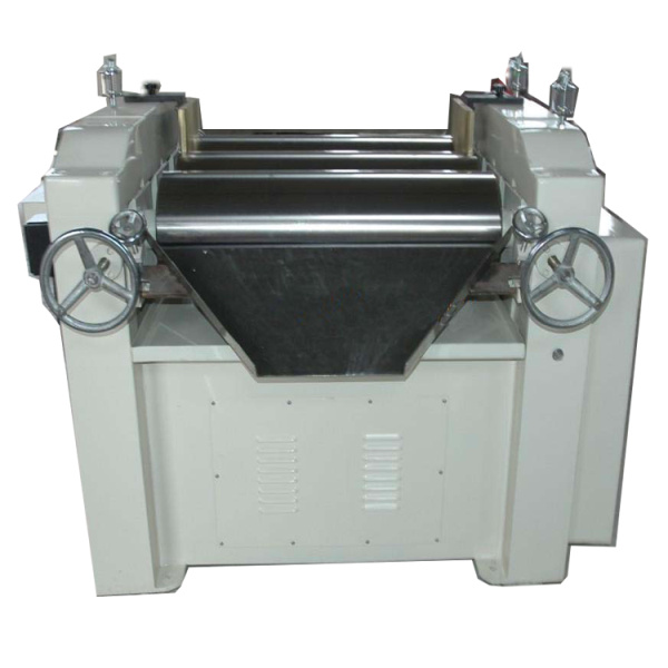 用于需要分散而細度要求較高的音體或高粘度物料使用;通過水平的三根提簡的表面相互擠壓,手搖式調節輥簡之間的間距,以不同速度的摩擦達到研磨效果。裝有緊急制動按鈕,防止落入異物導致的設備損壞。輥子使用特殊硬質合金澆鑄而成,也可以使用陶瓷材質。