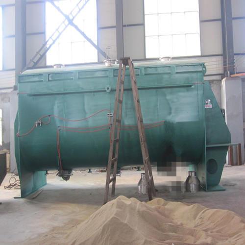 該機由混合槽、螺旋攪拌葉片和傳動部件等組合而成,螺旋葉片一般做成二層,外層螺旋將物料從兩側向中央匯集,內層螺旋將物料從中央向兩側分流,使物料在混合槽內形成對流混合,從而達到高均勻度混合。該設備為臥式混合機,出料高度可以根據要求定制。