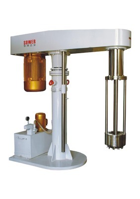 料,具有非常顯著的分散混合效果,通過液壓泵工作驅動液壓柱塞升降,帶動整個傳動機構和研磨裝置升降。
