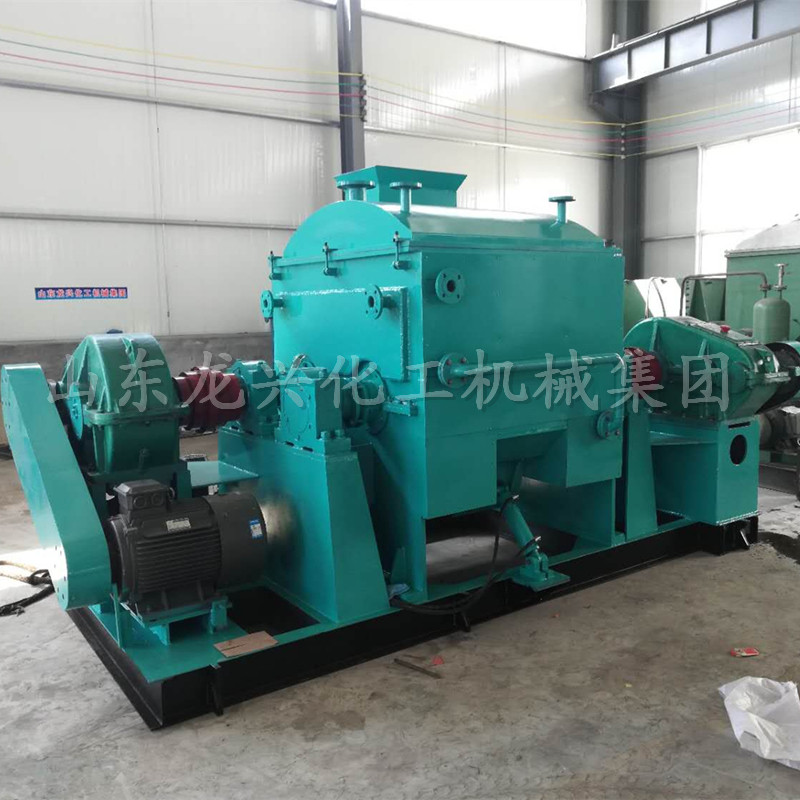 真空捏合機廣泛應用于高粘度、高彈塑性物料的混煉、捏合、破碎、攪拌、硫化、重新聚合等。捏合機具有攪拌均勻、無si角、捏合效率高等優點。 捏合機由一對互相配合和旋轉的葉片(通常呈Z形)所產生強烈剪切、擠壓、攪拌作用而使粘稠物料迅速混合均勻。 真空捏合機可制成普通型、壓力型、真空型、高溫型。 根據材質可分為碳鋼捏合機、不銹鋼捏合機及特種材質捏合機。 調溫形式采用蒸汽、油高溫加熱、水冷卻等方法。 出料方式有液壓、翻缸傾倒、球閥出料,螺桿擠壓、液壓翻板出料等。并可通過PLC實時控制及記錄生產中的溫度、時間、粘度等相關數據。 真空捏合機主要由捏合部分、機座部分、液壓系統、傳動系統、真空系統和電控系統等六大部分組成。捏合部分由缸體、漿軸、墻板、缸蓋等組成。液壓系統由一臺液壓站來操縱兩只小油缸和兩個大油缸,來完成啟閉大蓋、翻動攪拌缸功能。傳動系統由電機、減速機和齒輪組成、根據捏合機型號配套電機。在傳動過程中,可由電機同步轉速,經彈性聯軸器至減速機后,由輸出裝置傳動快漿,使其達到規定的轉速,也可由變頻器進行調速。