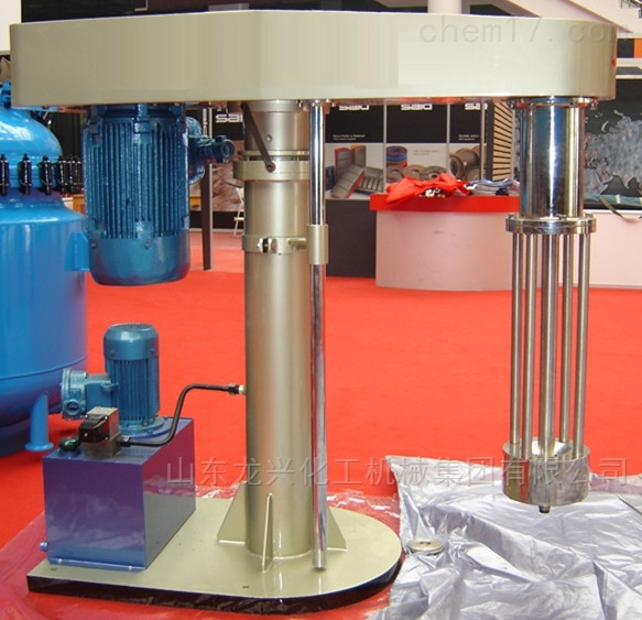 精細研磨—籃式研磨機(分散研磨一體)電機運轉帶動撥桿和底部分散盤高速旋轉,使分散盤上部及籃腔內部形成真空,漿料被吸入籃式研磨腔內。撥桿驅動腔內的研磨介質產生向各個方向的力,物料中的顆粒受到介質不斷地碰撞及摩擦,粒徑變小,粒徑范圍變窄;分散盤的高速運轉,產生渦流將腔內物料抽吸出來,再循環至進料,具有非常顯著的分散混合效果,通過液壓泵工作驅動液壓柱塞升降,帶動整個傳動機構和研磨裝置升降。